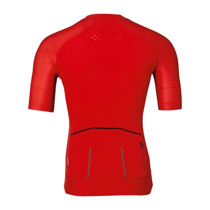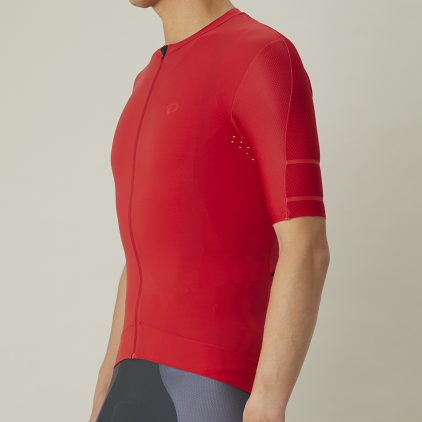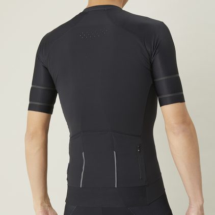 イタリア製機能素材を使用し、軽さとフィット感を重視したラグジュアリーなコンセプトモデルです。優れたストレッチ性能であらゆる動きにも追従します。柔らかなで自然な着心地で袖口はカットオフ仕様になっているので肌に優しくフィットします。脇や背面上部レーザーカットによるメッシュを配置することで、サイクルウェア内の通気を確保しています。