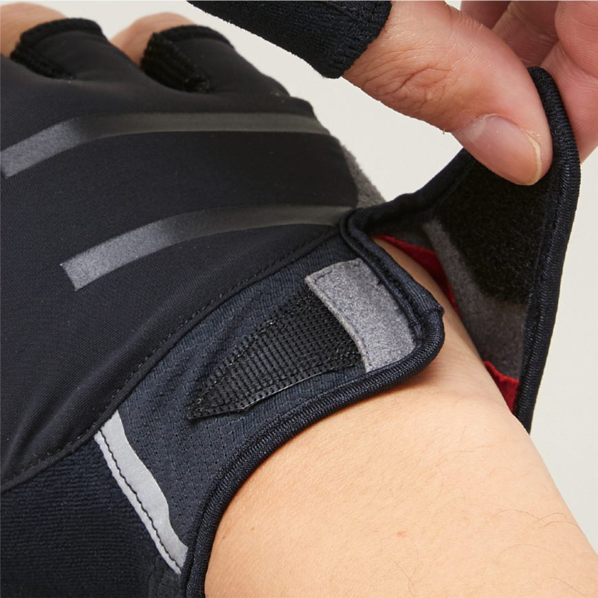各指ごとに自然な指の曲がる角度を再現し、素手のようなダイレクトな操作性とグリップ力のハイエンドモデルです。手の平の低反発ウレタンと中厚のクッションパッドで長時間のライドでも快適です。手首には再帰反射を配置して夜間のライドへも配慮。手首のベルクロで手の平のフィット感を心地よく調節できます。