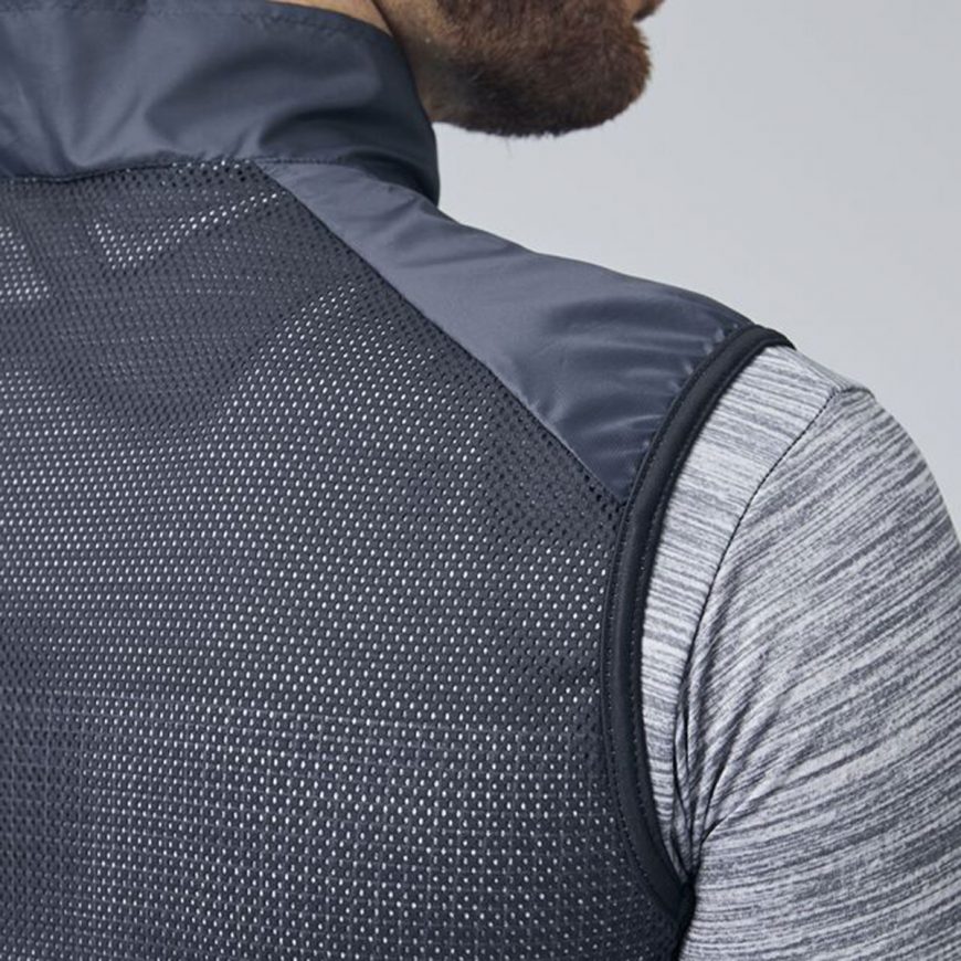 手軽に温度調整が可能なウィンドブレーカーベストも全面リニューアル。これまでよりも細身でバタつきにくいシルエットへと変更しました。軽量・薄手で防風性に優れた新しい素材を採用し、冷えに弱い前面部分を防風しつつ、背面はメッシュ素材で熱やムレを放出。ポケッタブルでコンパクトに収納できるので携帯に便利なアイテムです。